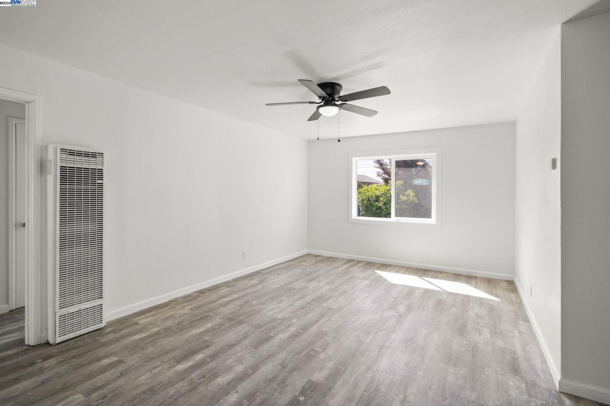 Don't miss out on this opportunity! Fully remodeled, this 2 bedroom, 1 bath home boasts upgrades and convenience. The property features a new roof, electricals, interior and exterior paint, updated lighting fixtures, and beautifully landscaped gardens complete with a new sprinkler system in front yard. Inside, enjoy a spacious living and dining area with new laminate flooring and a modernized kitchen equipped with stone countertops and gas connections for stove. The large, low-maintenance backyard is fully fenced, ideal for summer barbecues. Conveniently located close to Highway 880, Oakland Airport, and downtown Oakland, this home combines quiet living with urban accessibility.