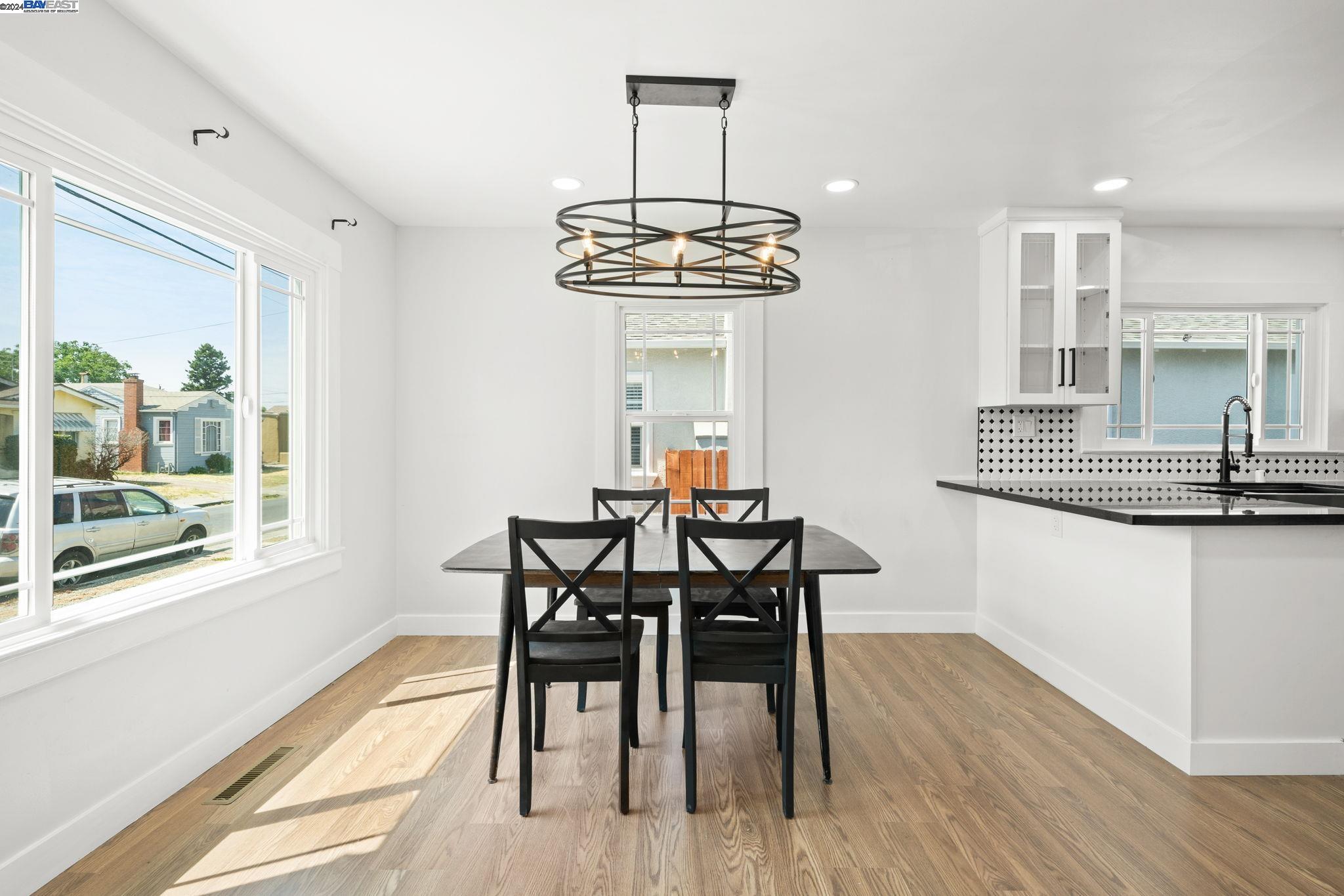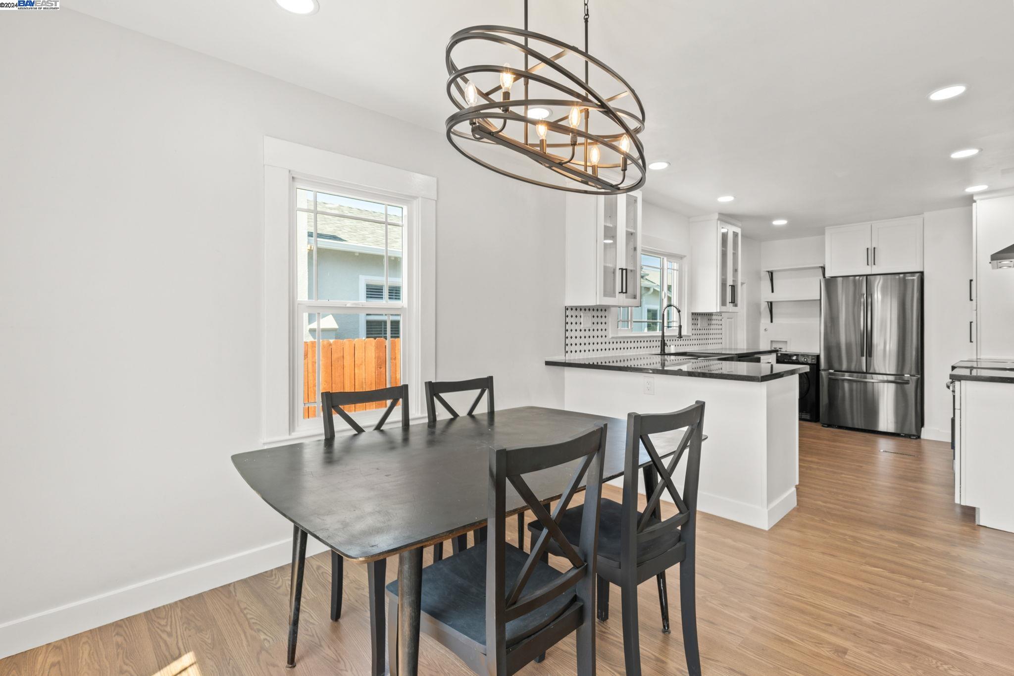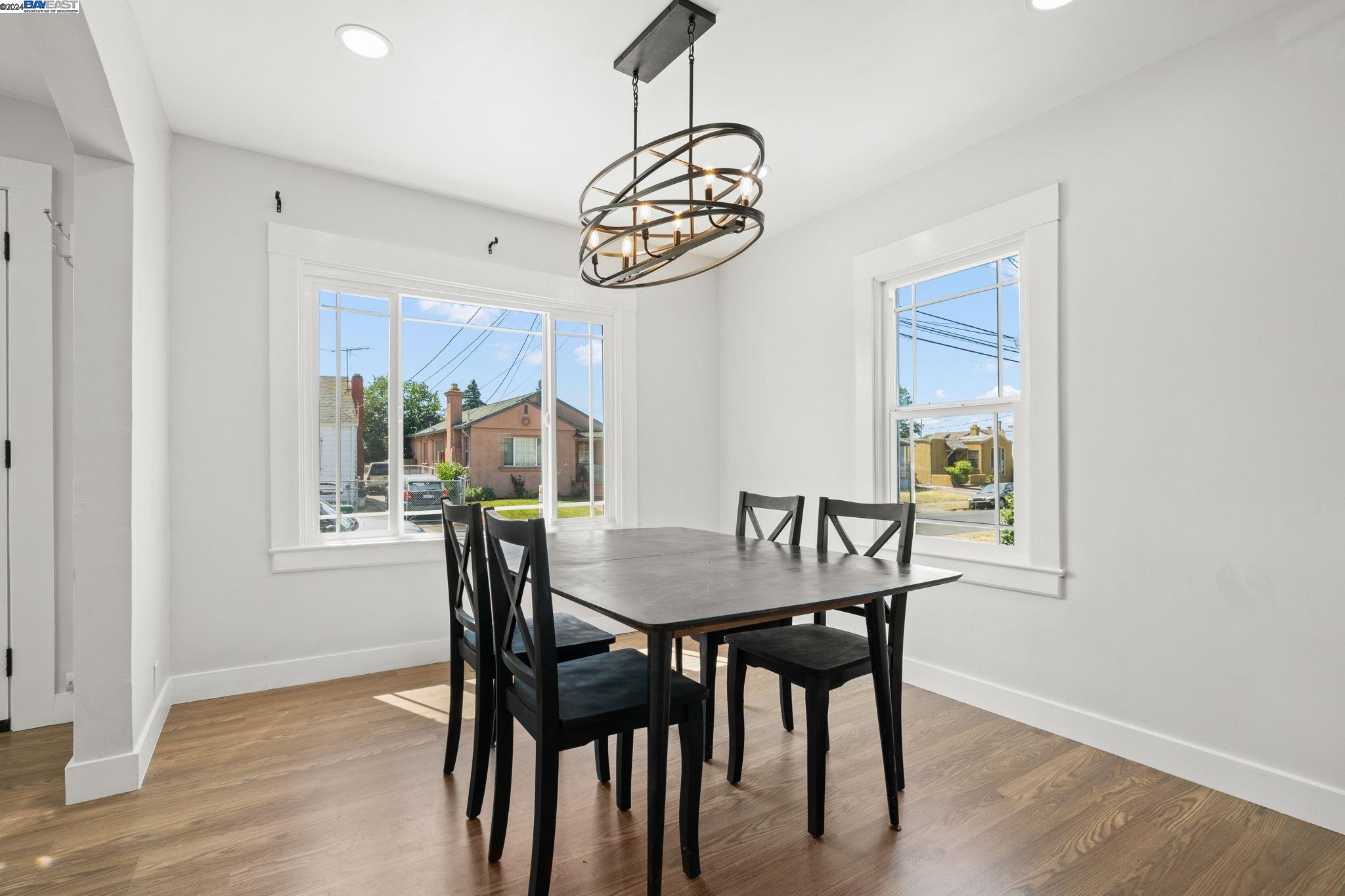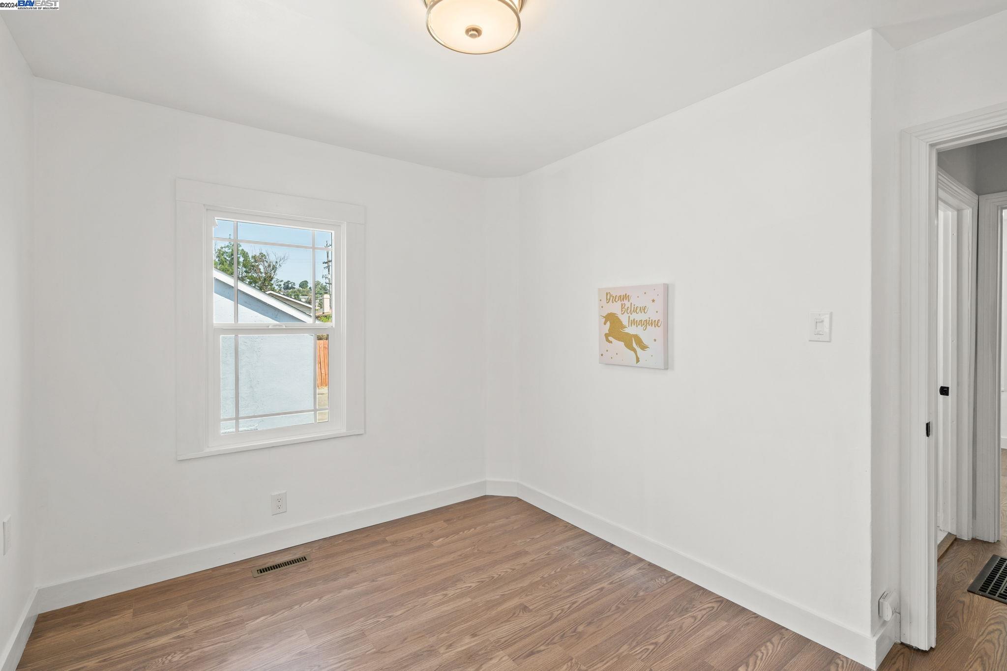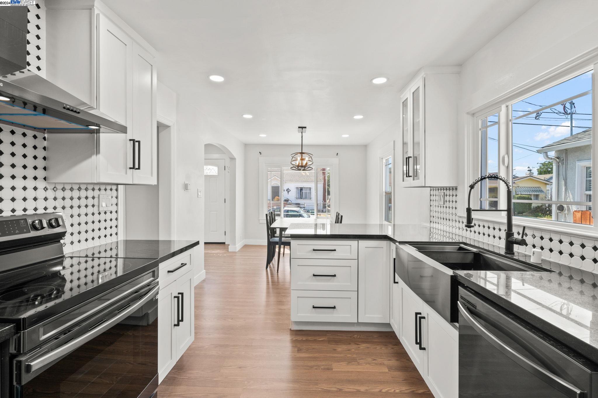 Check out this delightful 3-bedroom, 1-bathroom home that's just been beautifully updated. The property boasts a recently renovated kitchen with new cabinets and recessed lighting, complemented by a stylish bathroom, modern flooring, and a new roof. For added safety and convenience, the electrical system has been thoroughly upgraded. Featuring an extended driveway and a detached garage that serves as an excellent additional workspace, this home is perfectly situated with easy access to HWY 580 and just a short distance from San Leandro. Located in a prime Oakland area, this gem is a must-see!