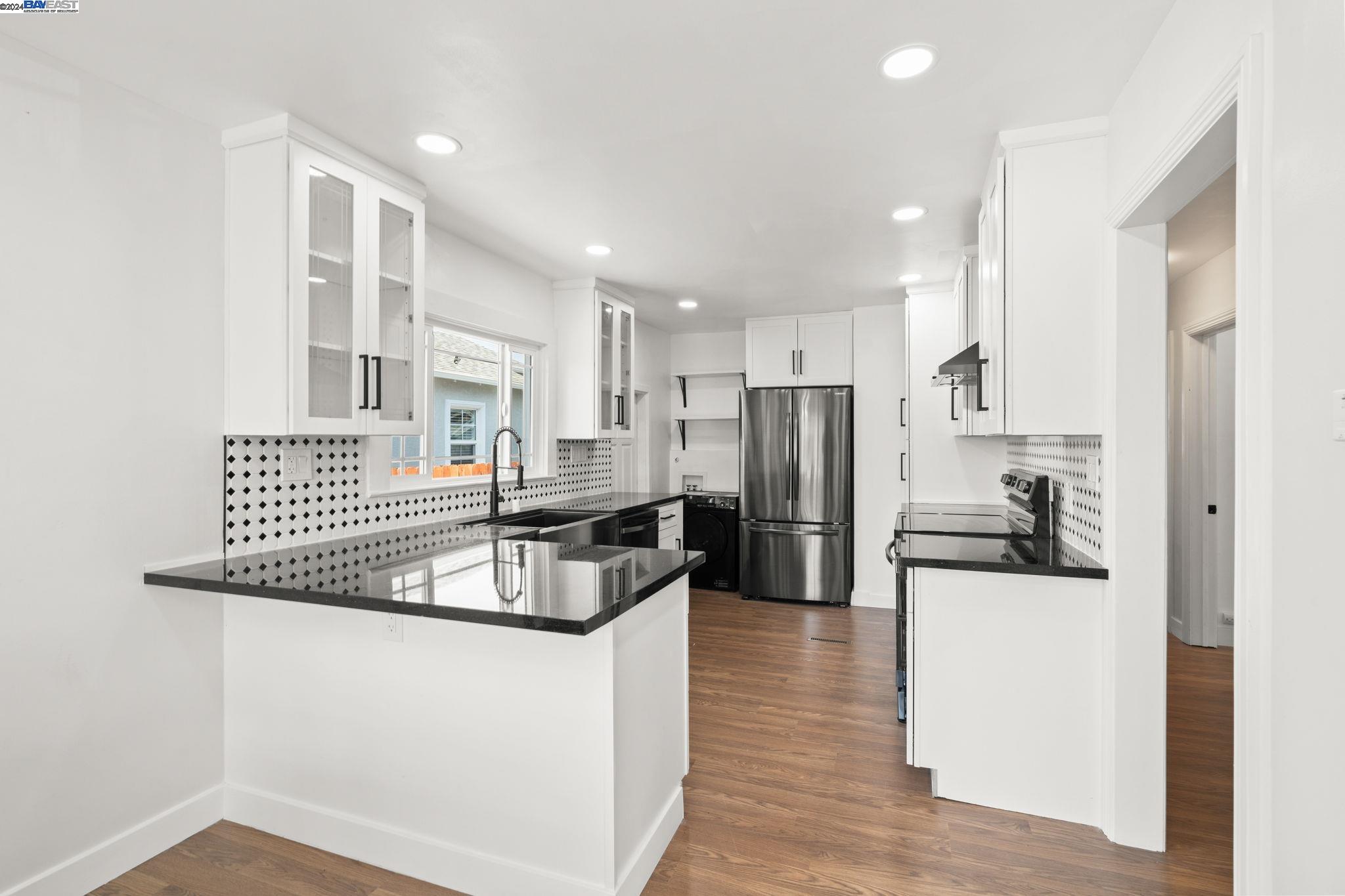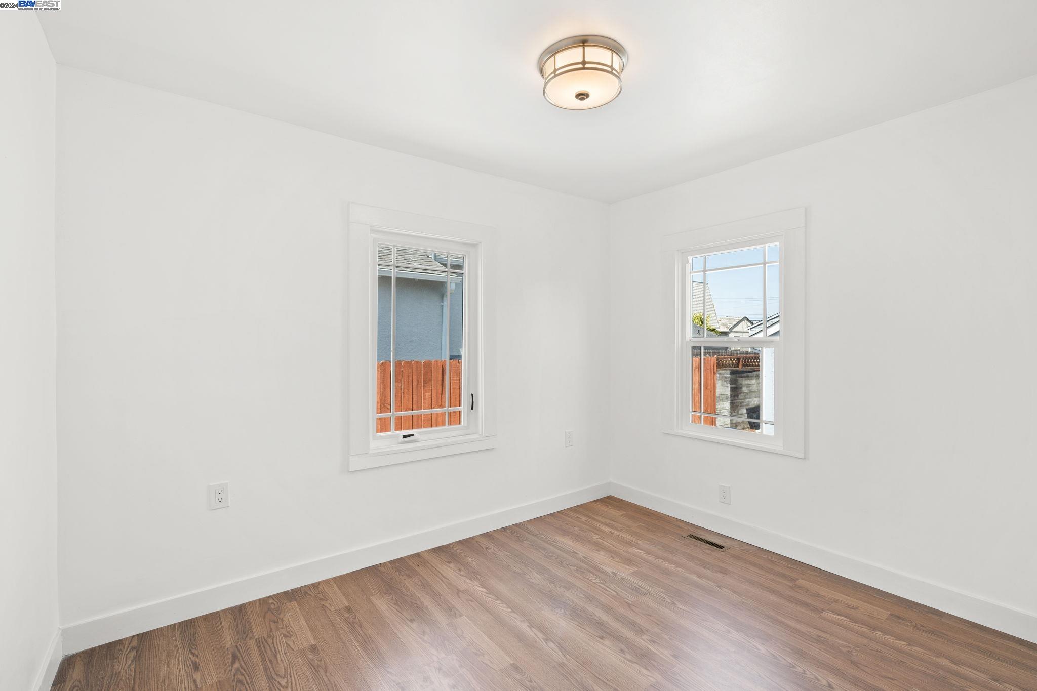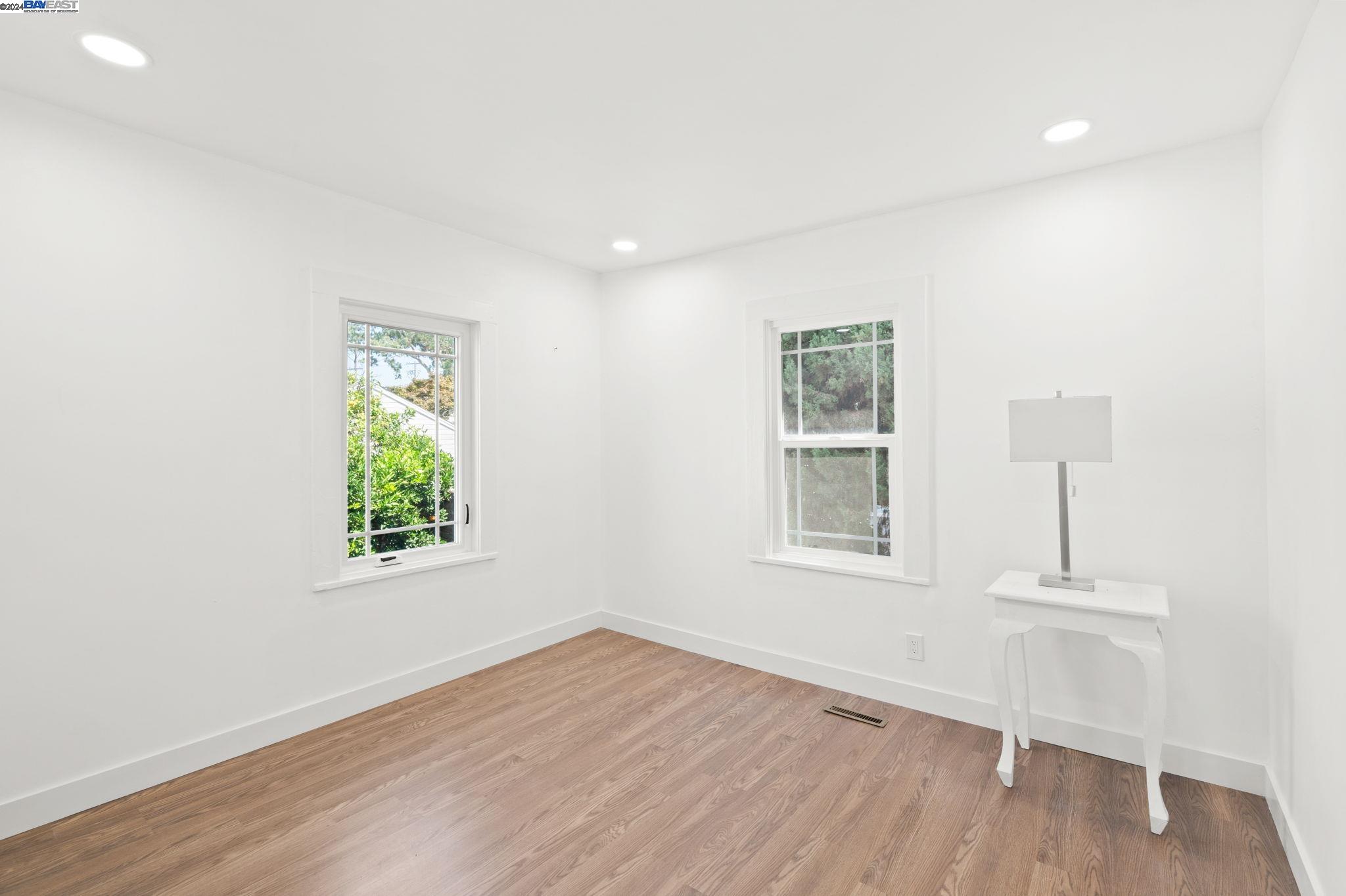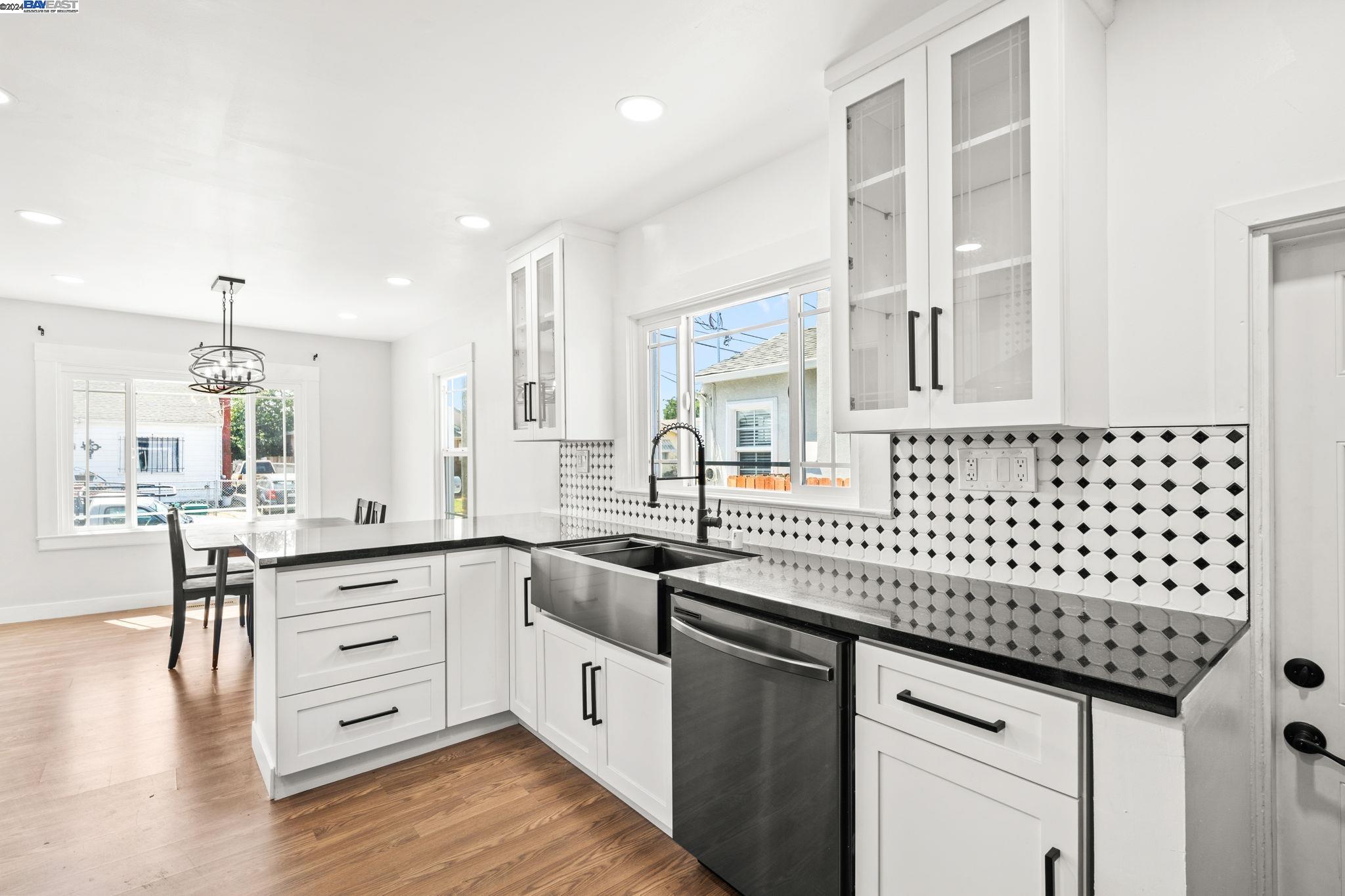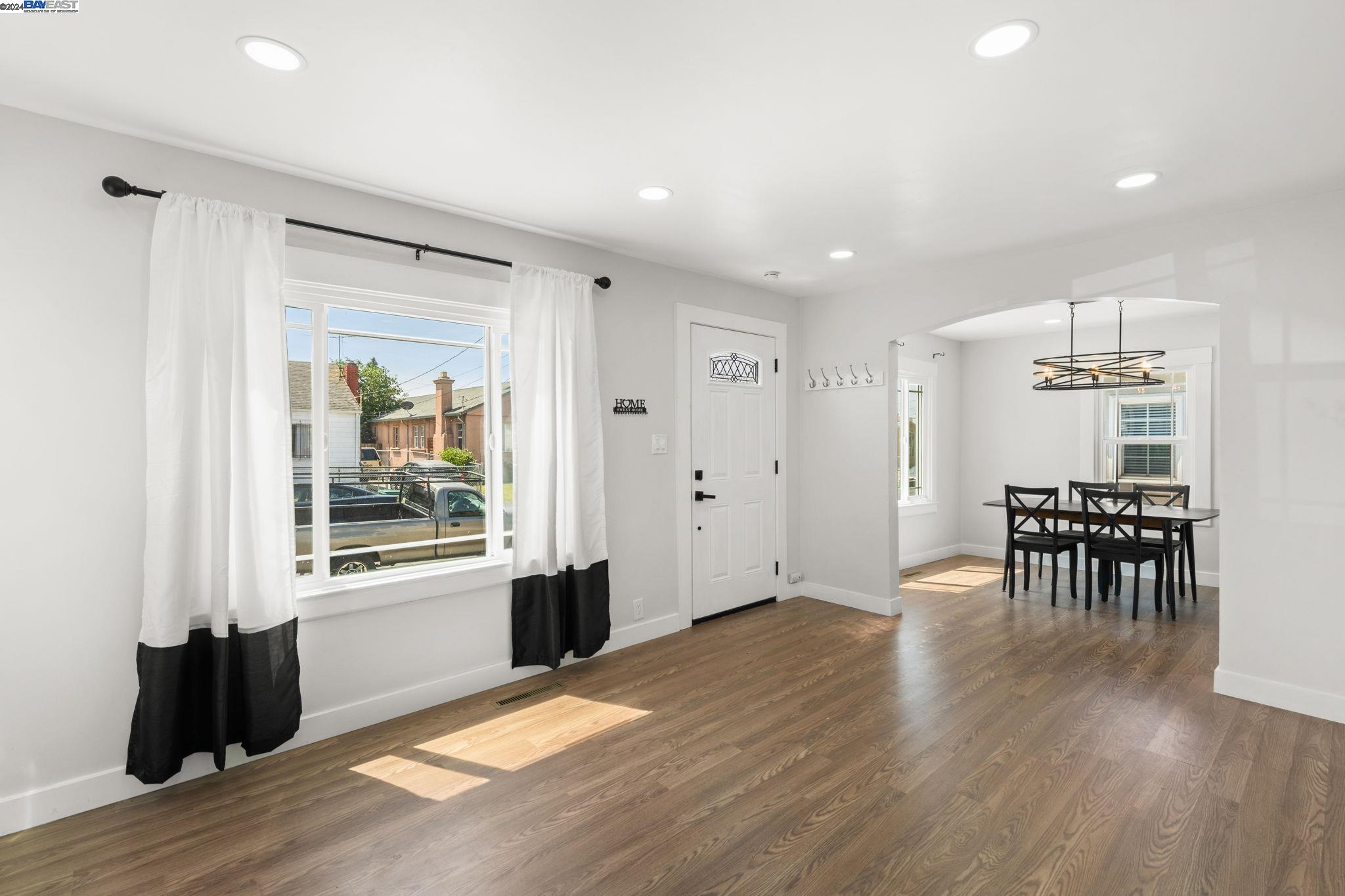 Check out this delightful 3-bedroom, 1-bathroom home that's just been beautifully updated. The property boasts a recently renovated kitchen with new cabinets and recessed lighting, complemented by a stylish bathroom, modern flooring, and a new roof. For added safety and convenience, the electrical system has been thoroughly upgraded. Featuring an extended driveway and a detached garage that serves as an excellent additional workspace, this home is perfectly situated with easy access to HWY 580 and just a short distance from San Leandro. Located in a prime Oakland area, this gem is a must-see!