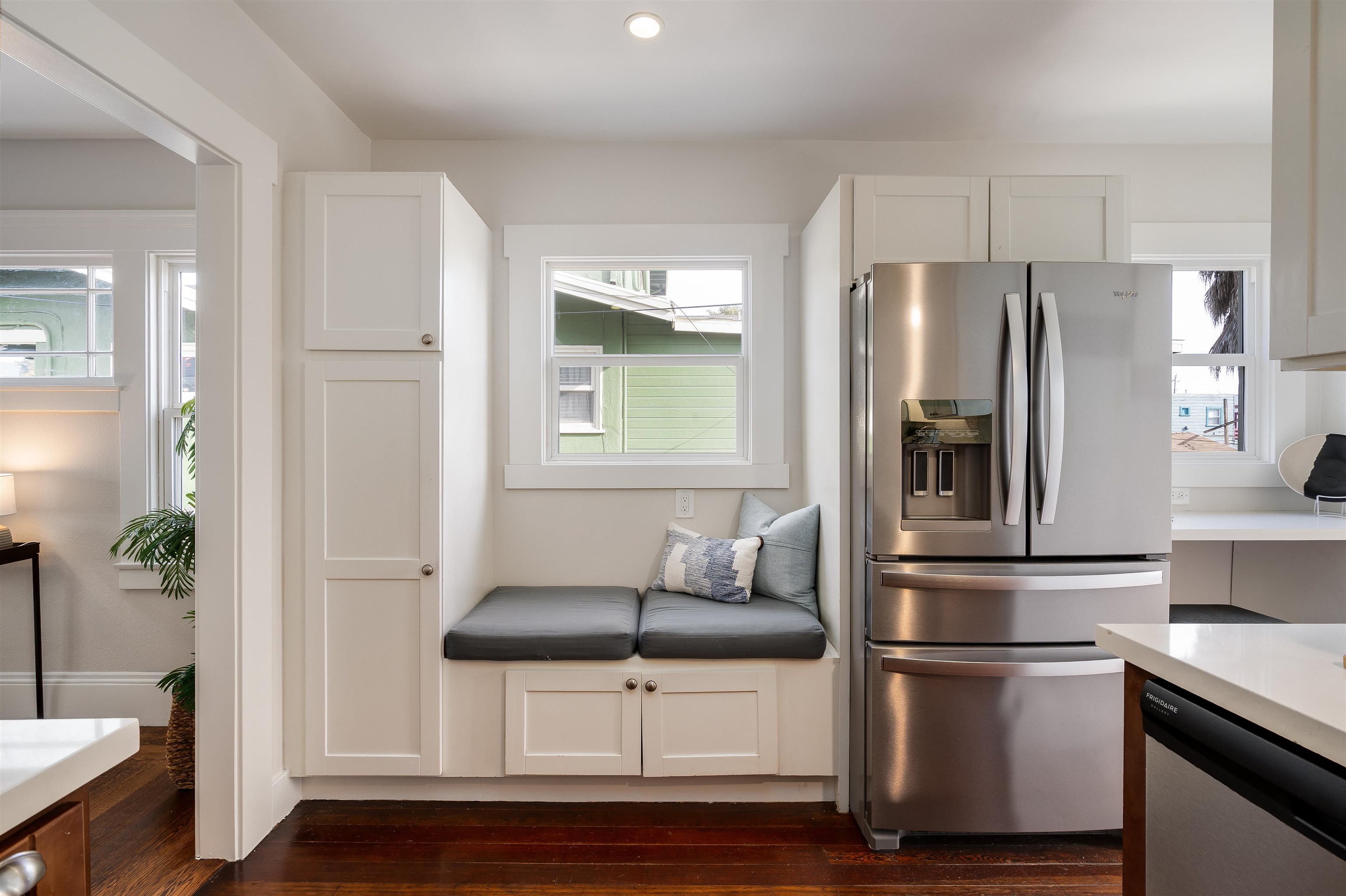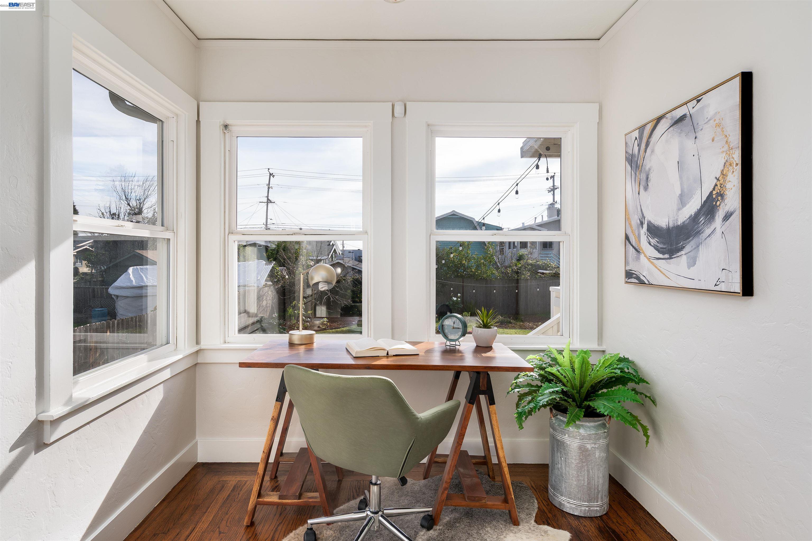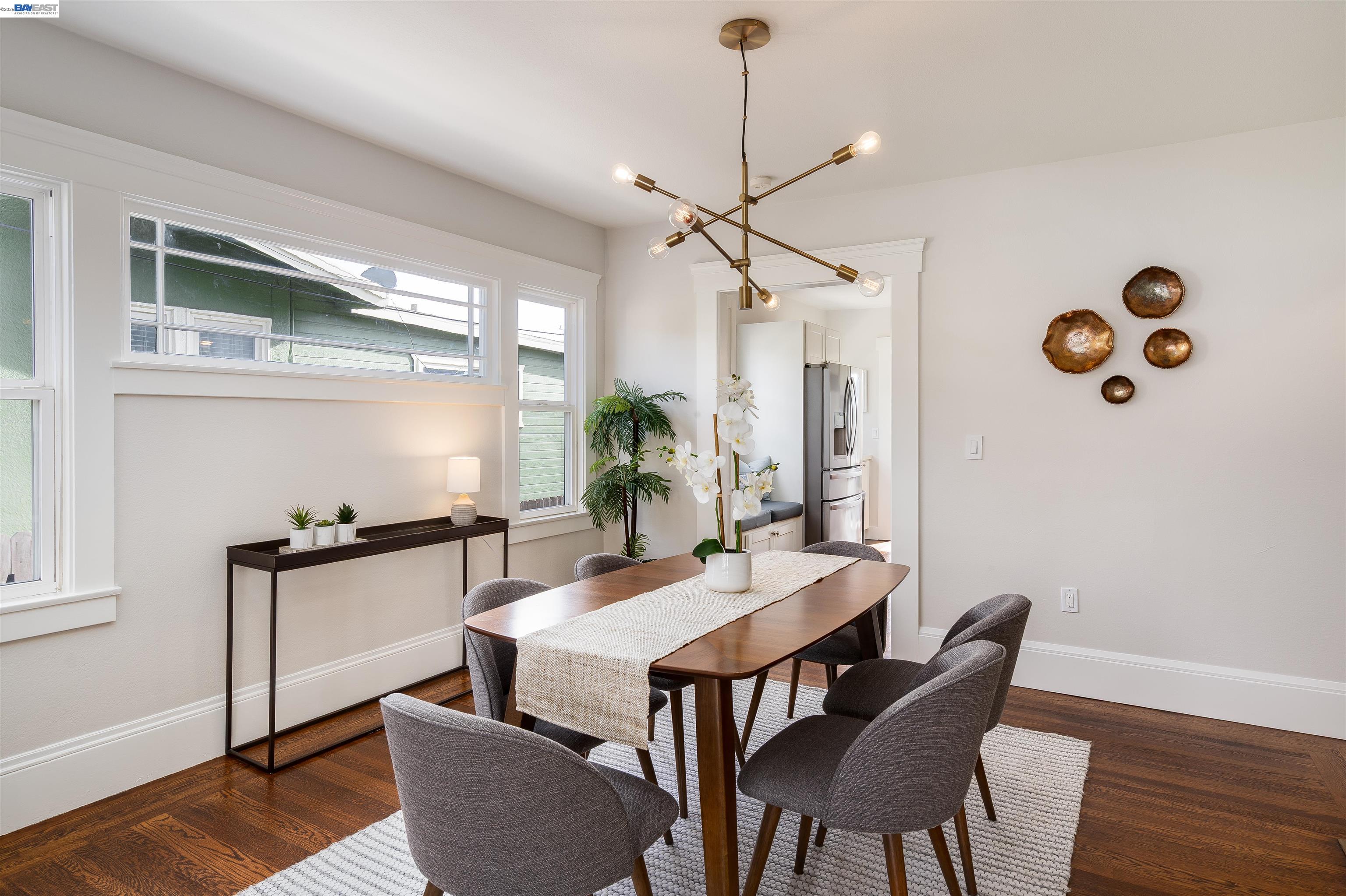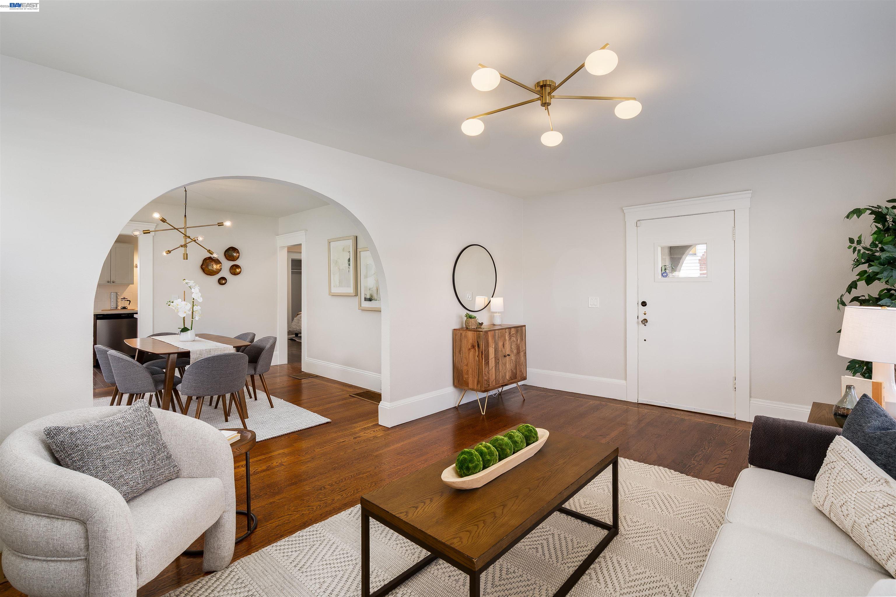 Welcome to 5431 Ygnacio Avenue -- a charming Oakland home that blends classic character with modern upgrades. Step into a bright living room with original hardwood floors, modern lighting, and a stylish tiled fireplace. The formal dining room connects to the updated kitchen featuring two-tone shaker cabinets, quartz countertops, tile backsplash and stainless steel appliances. A sunny nook off the kitchen offers space for a breakfast area or home office overlooking the spacious backyard. The home includes three comfortable bedrooms and two full bathrooms with custom tile finishes. Enjoy the outdoors on the 5,625 sq ft lot with a lush lawn, planter beds, and a sunken seating area--perfect for entertaining. A long driveway provides parking for multiple vehicle and the oversized yard is perfect for entertaining with enough space for detached garage or ADU. Solar panels with below market electricity rates are a huge bonus. Additional space in the basement is perfect for a home office and storage. Move-in ready with timeless style and thoughtful updates throughout.