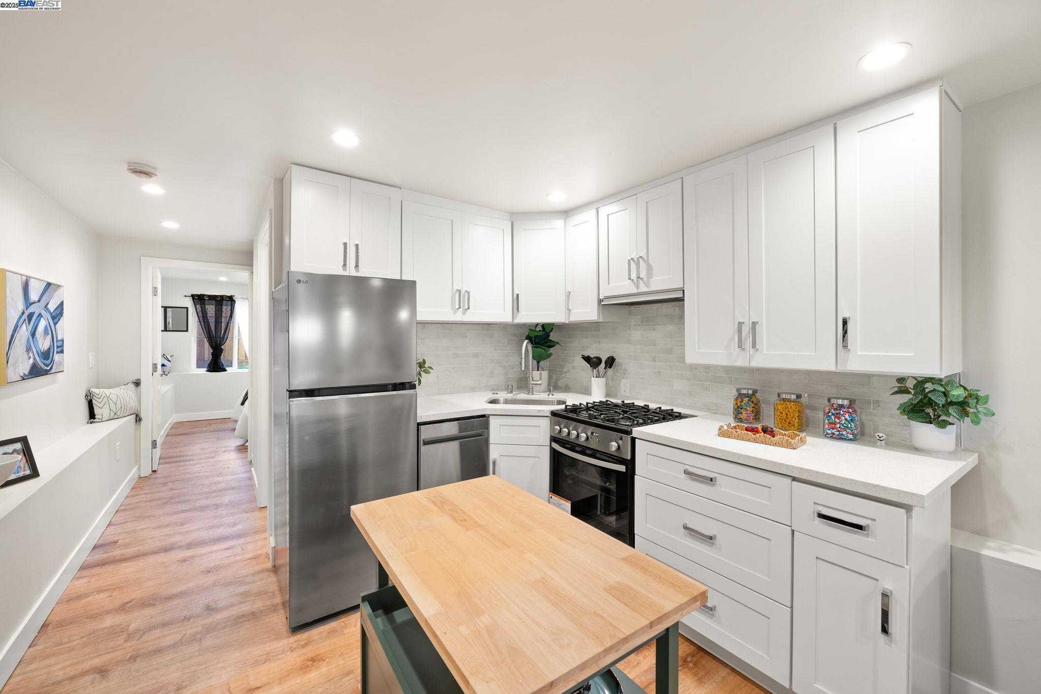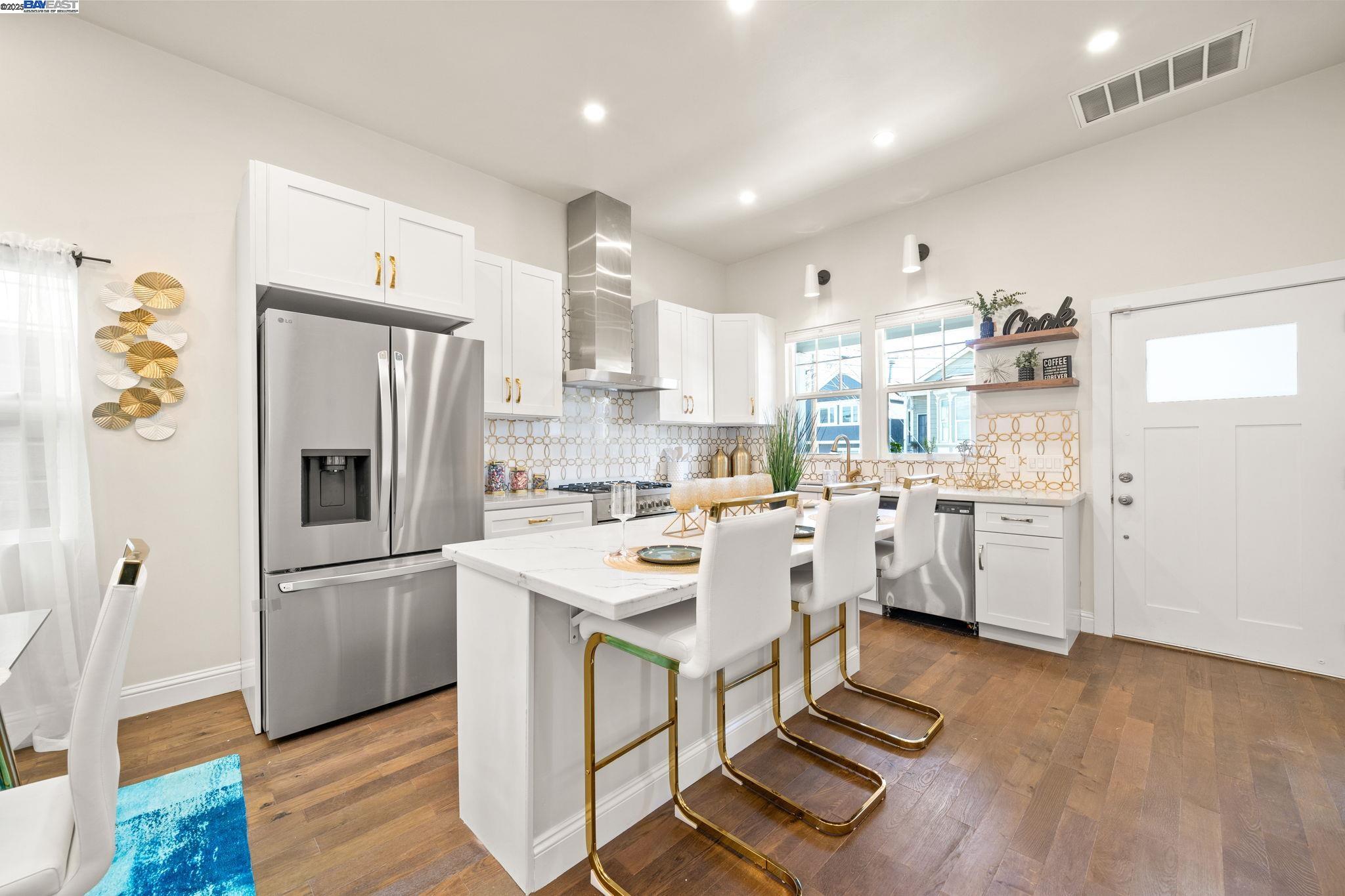Welcome to 857 McElroy, a beautifully renovated gem in the vibrant heart of Oakland. This stunning single-family home offers a perfect blend of classic charm and modern elegance, featuring an airy upstairs with three bedrooms and two baths. Step inside to discover a thoughtfully updated interior, where designer finishes highlight every corner. The home boasts updated floors and windows that flood the space with natural light, along with updated interior and exterior paint that enhances its curb appeal. The remodeled kitchen and bathrooms are adorned with tasteful fixtures, ensuring a luxurious living experience. Downstairs, you'll find a one-bedroom, one-bath accessory dwelling unit (ADU), perfect for an in-law suite or rental opportunity. The sizable attached garage and driveway provide ample parking and storage space. Situated near a dead end, the location offers a peaceful and relatively quiet setting, making it an ideal haven for modern families seeking the best of Oakland living. Don't miss the opportunity to own this exquisite property a true masterpiece in design and functionality.